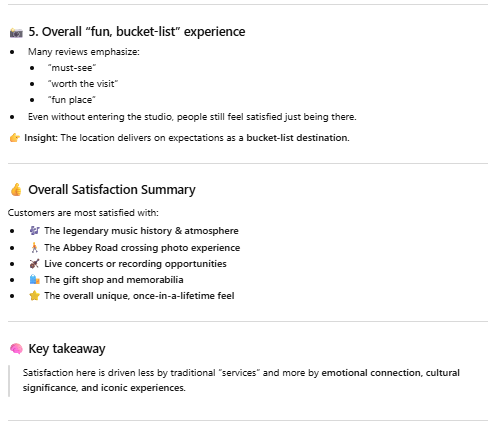 I entered this prompt into Chat GPT: “What are the customers most satisfied with based on the reviews?” Then, I copied and pasted some of the 5-star reviews into Chat GPT.