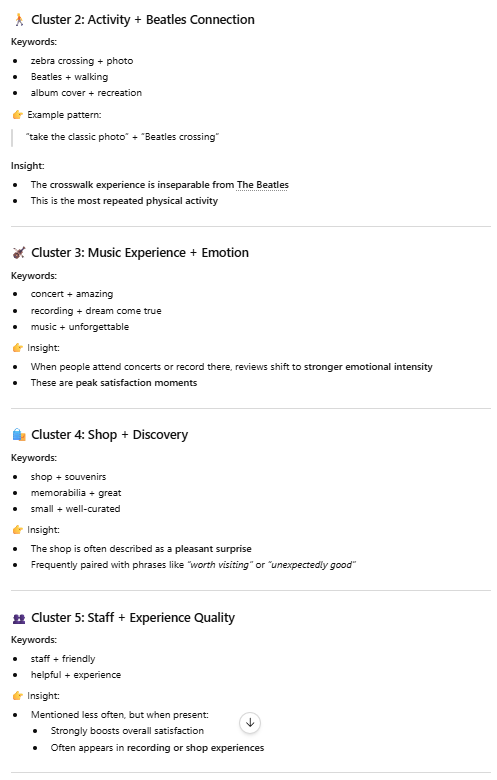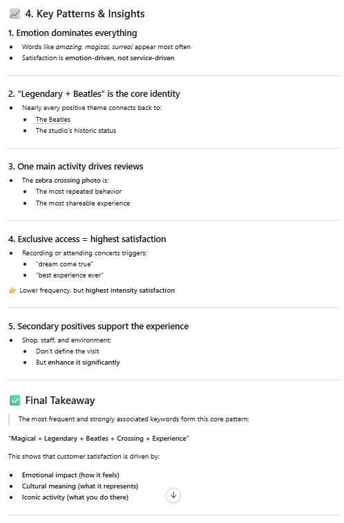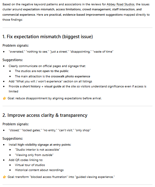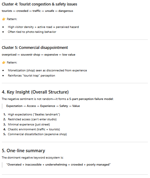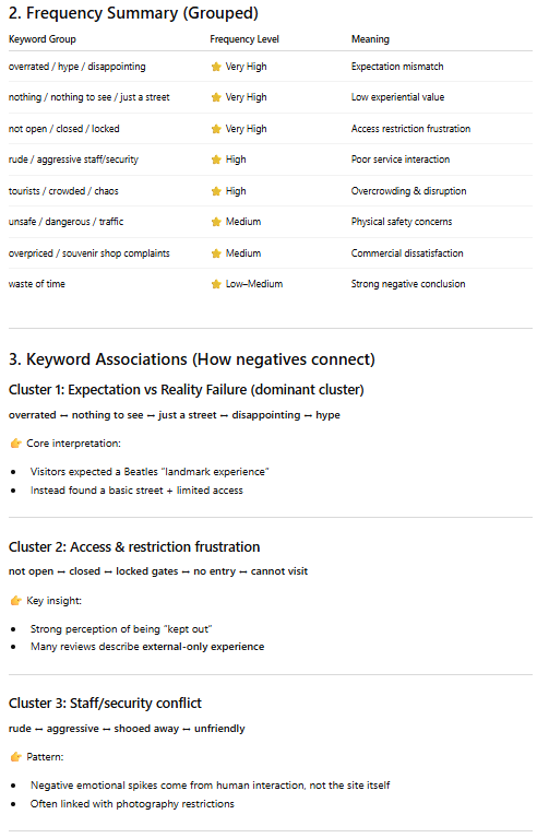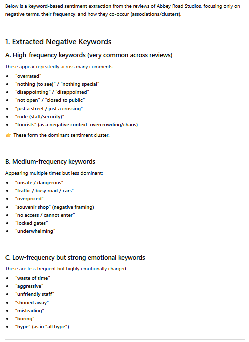 I copied and pasted this prompt into Chat GPT: “Extract negative keywords from those reviews, and analyze the frequency and associations of these keywords.”