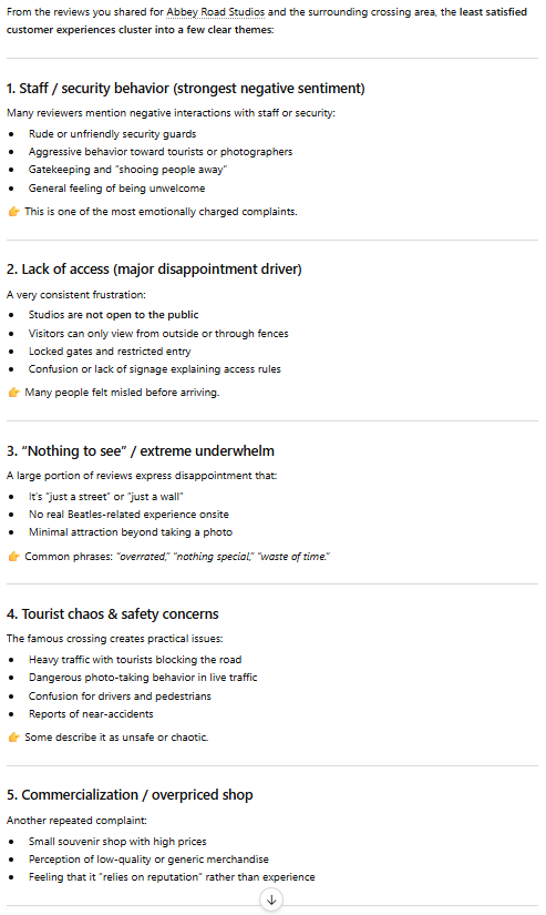 I will go to Google Maps and search Abbey Road Studios. Then, I will sort the reviews by “Lowest rating”.